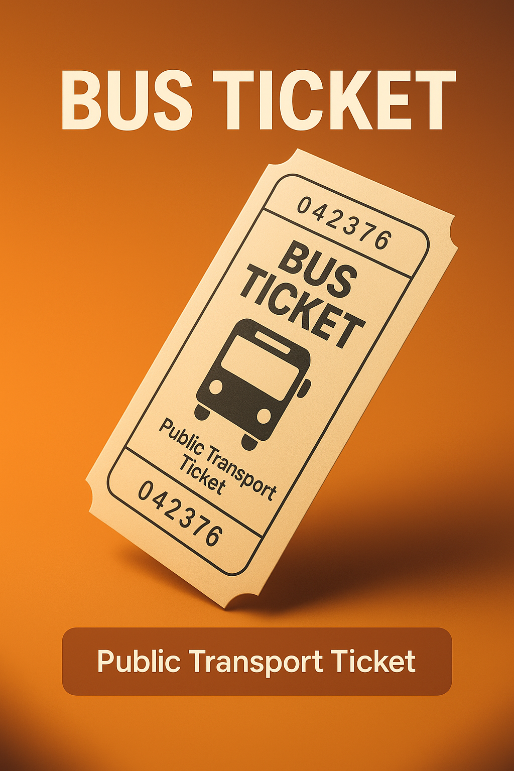 This is a digital graphic of a bus ticket, featuring a simple design on an orange background. It serves as a visual representation for public transport services.