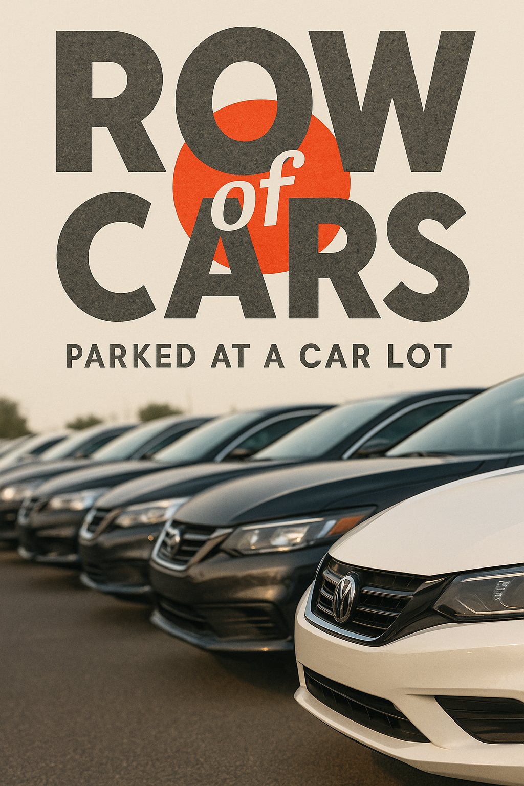 Promotional graphic showcasing a row of parked cars in a lot, with bold typography emphasizing the theme. Ideal for automotive marketing or dealership promotions.
