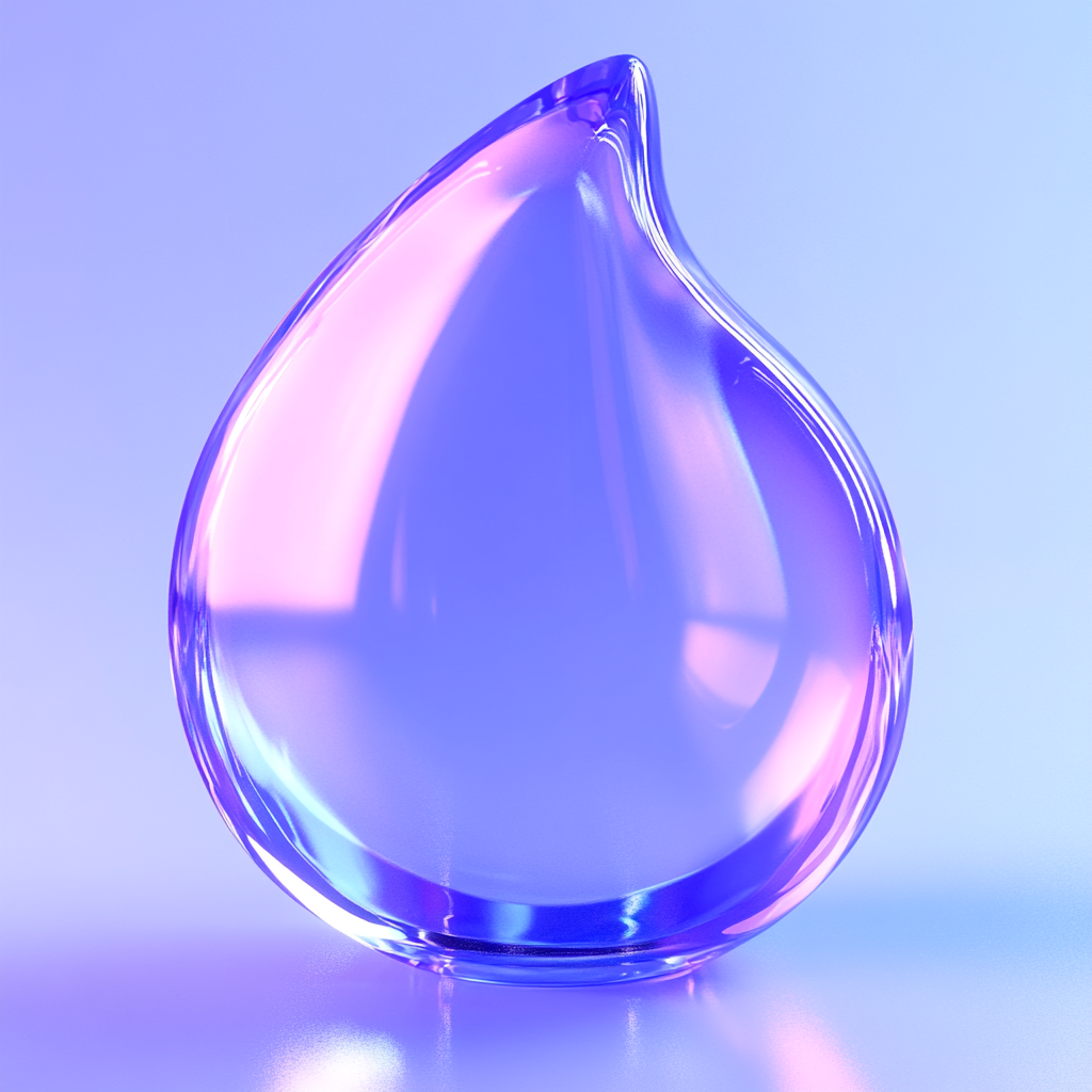 A minimalist glass design featuring a drop shape illuminated with a gradient of purple and blue hues. Ideal for product mockups or artistic displays.