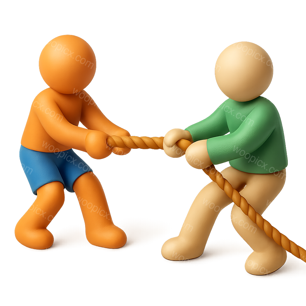 A vibrant 3D icon depicting two stylized figures engaging in a tug-of-war, one in orange and the other in green, with a rope connecting them.