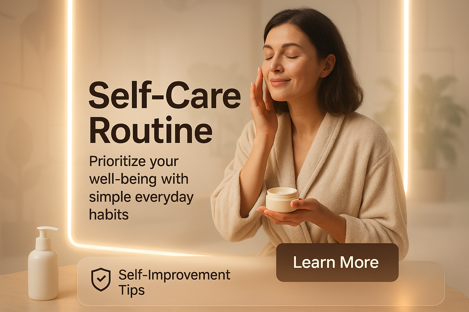 Self-Care Routine Promotional Graphic with Warm Aesthetics