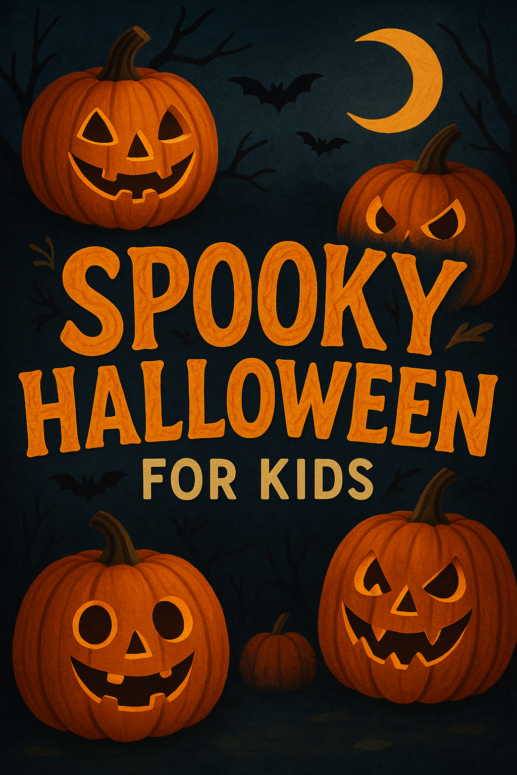 Halloween-Themed Illustration for Kids Featuring Jack-o'-Lanterns