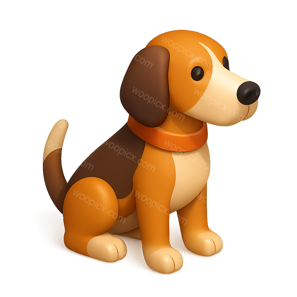 A charming 3D cartoon-style dog icon featuring a friendly beagle design. The dog has a brown and tan color scheme with a collar, sitting in a playful pose.