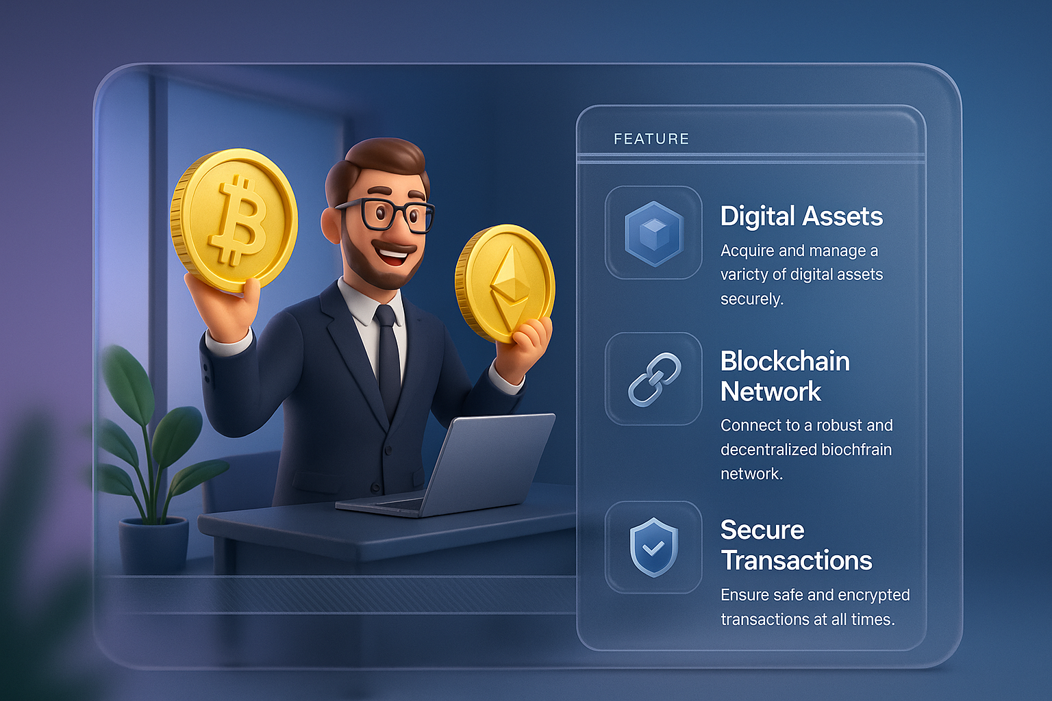 Businessman with Crypto Coins in Modern Office Setting