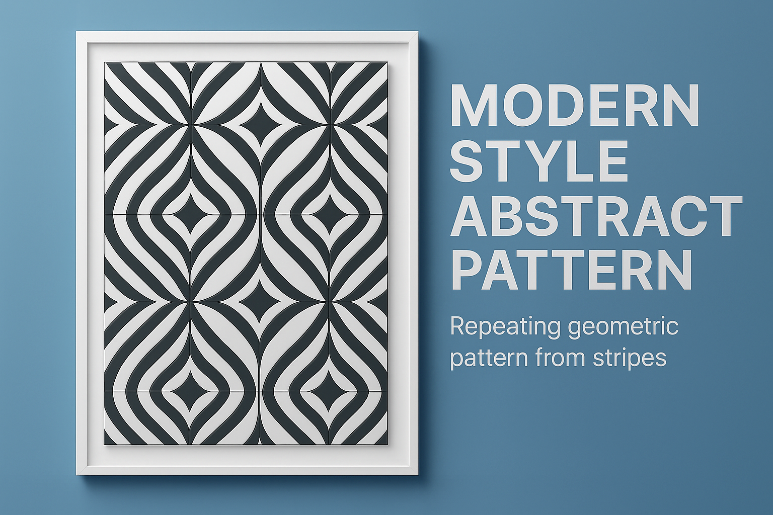 Stylish framed art piece featuring a modern abstract geometric pattern in black and white, ideal for contemporary interior decor and art showcases.