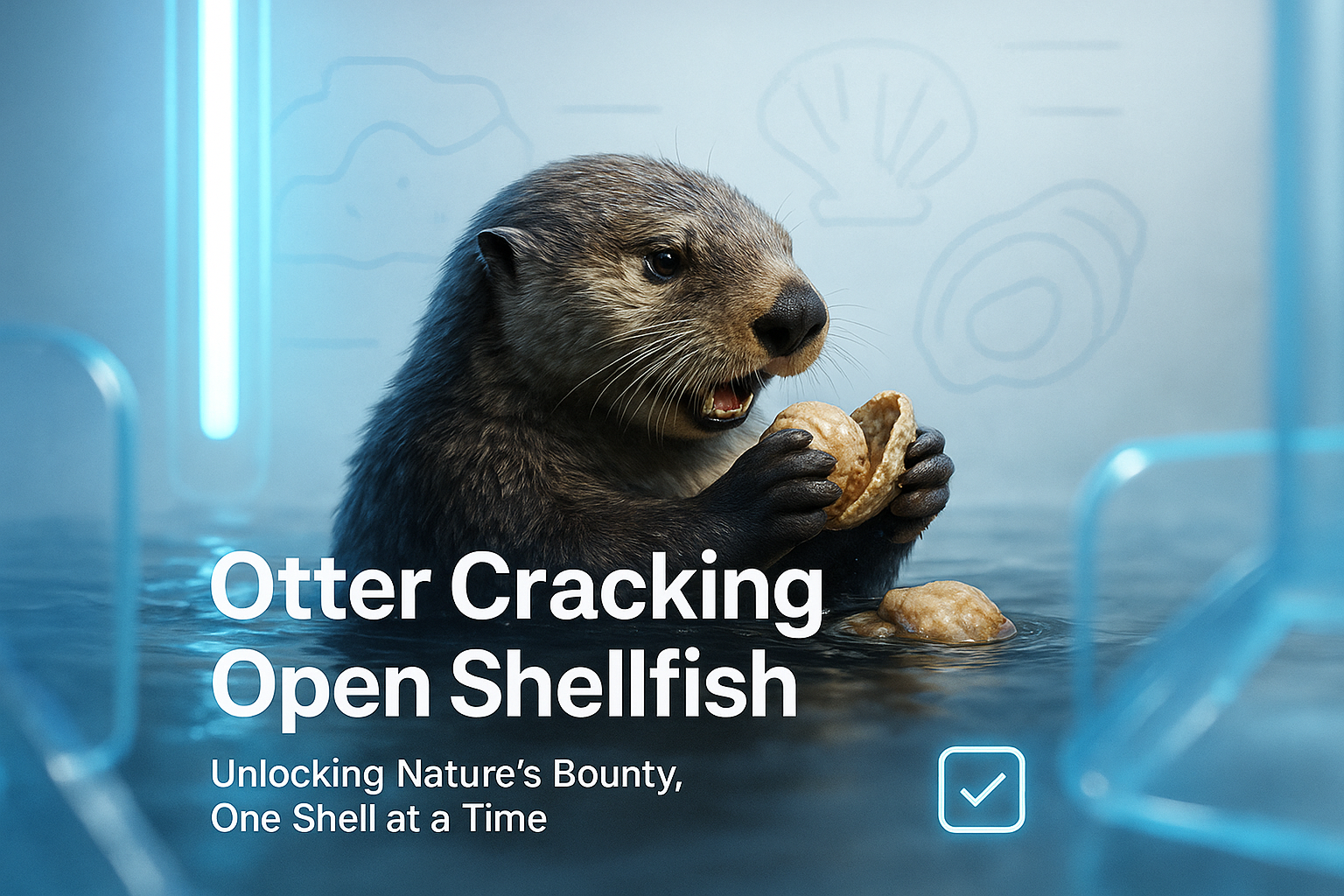 Vibrant Graphic Featuring an Otter Cracking Open Shellfish