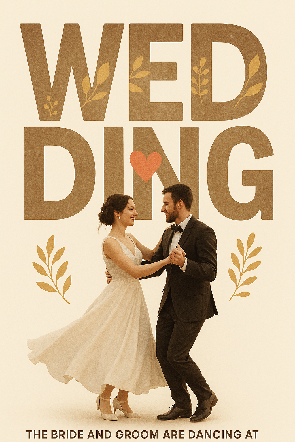 Charming wedding-themed graphic featuring a couple dancing, ideal for invitations or social media posts celebrating love and marriage.