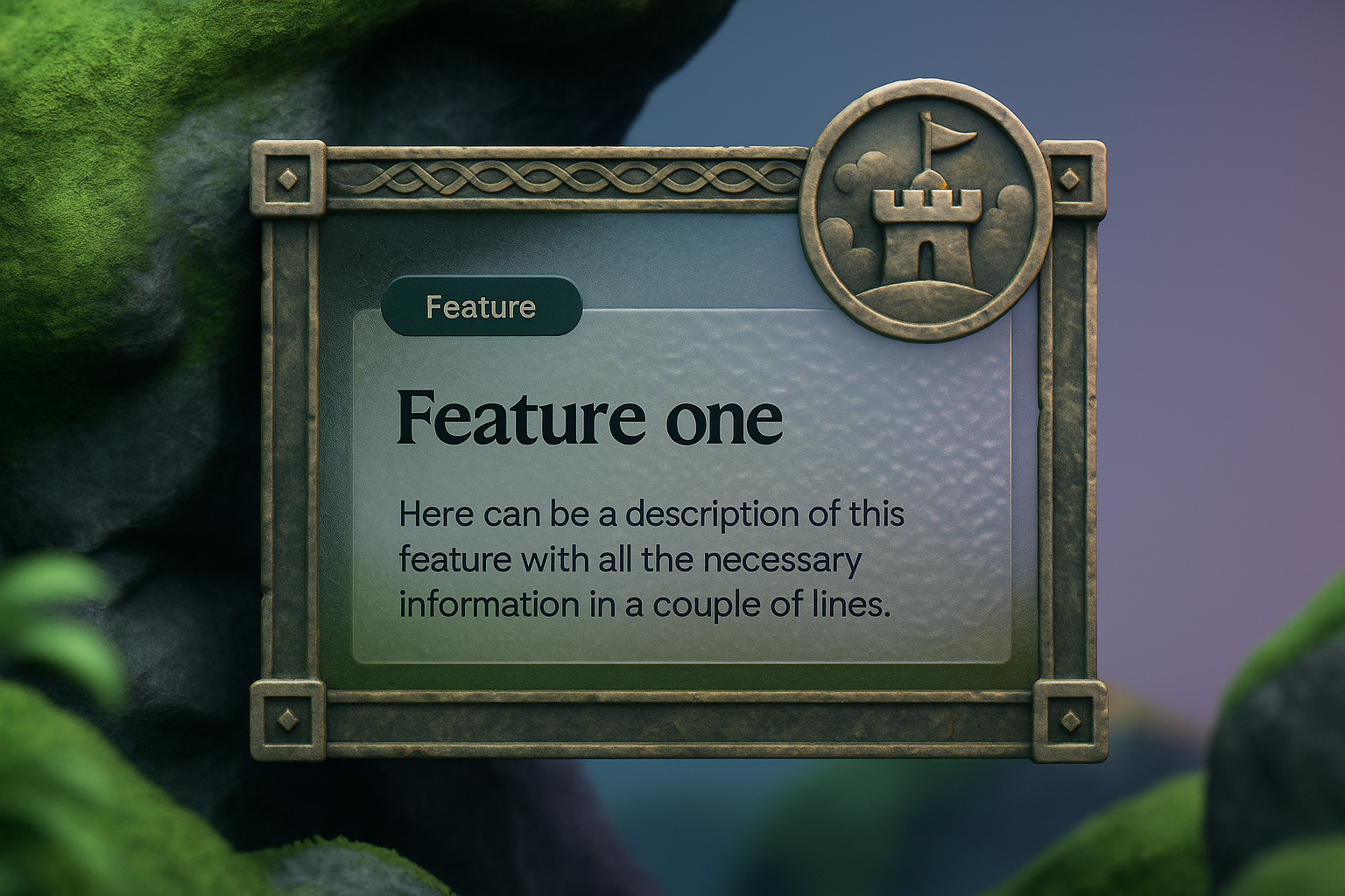 A visually rich medieval texture background featuring a layered composition. Includes a 3D illustration with a castle-themed feature block, enhancing web design aesthetics.