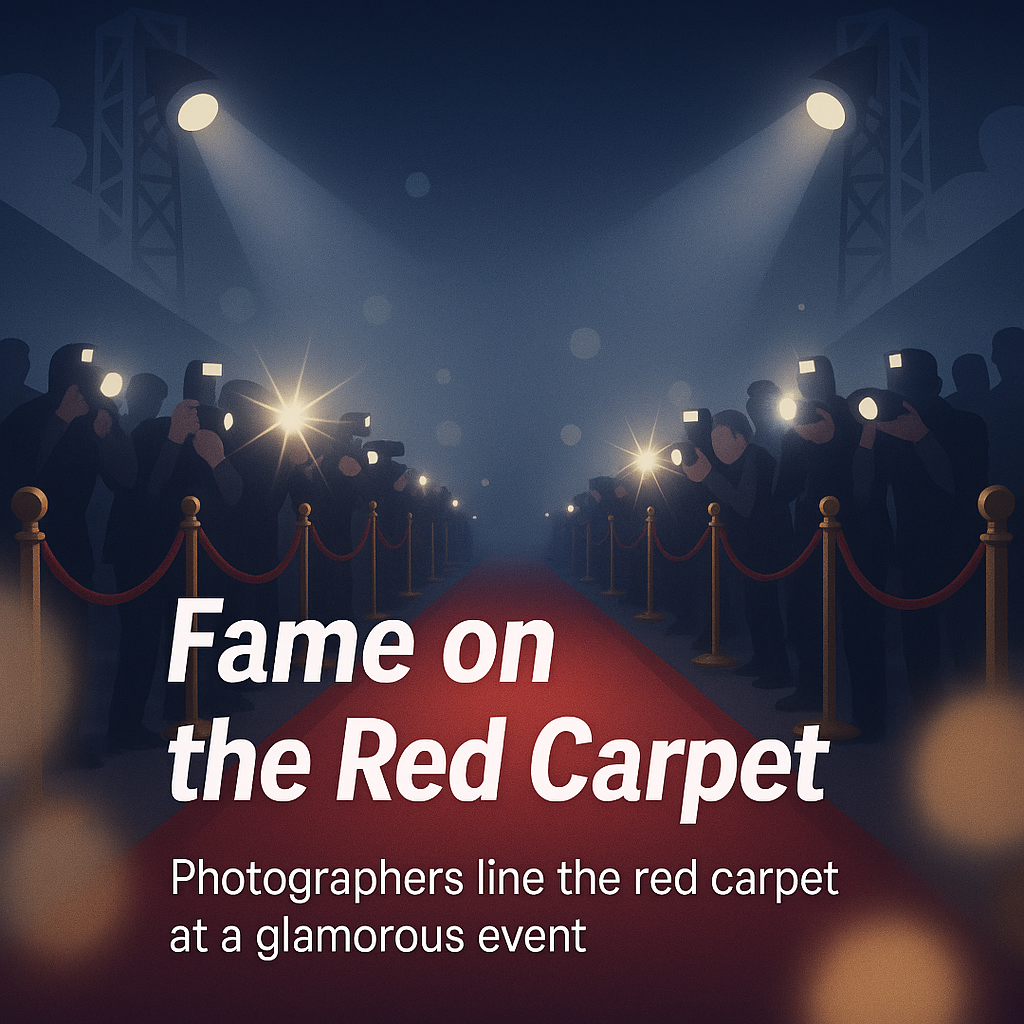 Stylized illustration of a red carpet event featuring photographers capturing moments, ideal for entertainment industry promotions or articles.