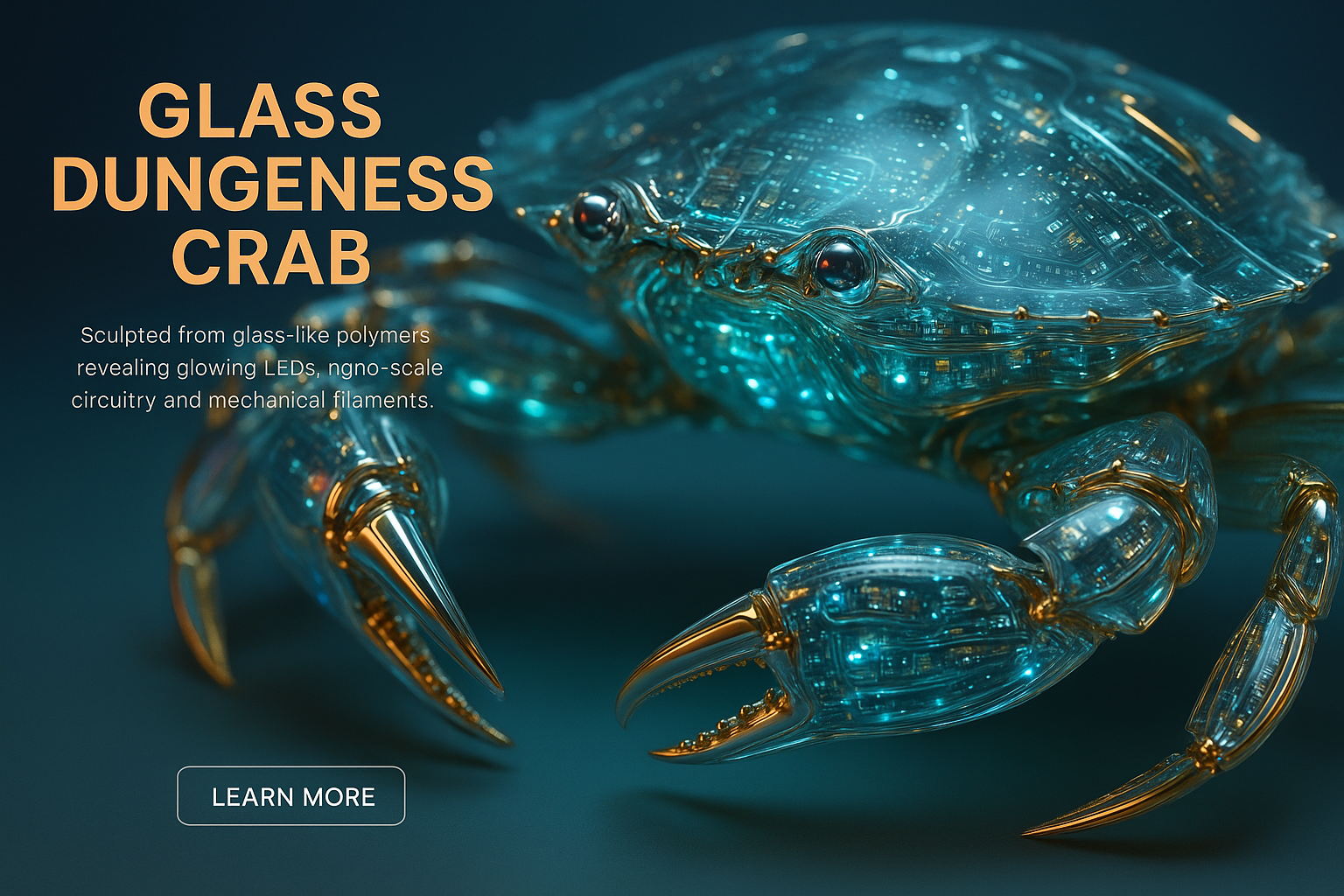 Hyperrealistic Glass Dungeness Crab with LED Details