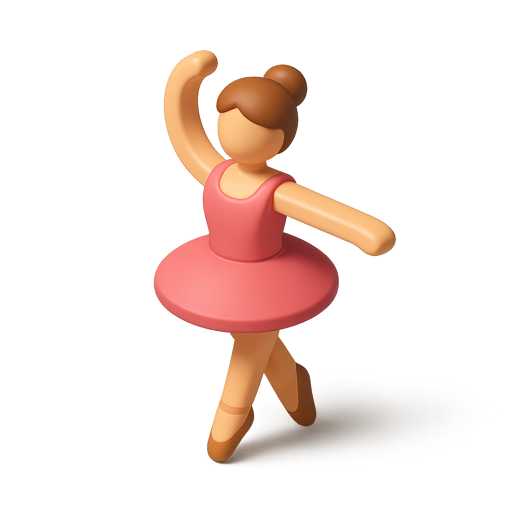 Stylized 3D Ballet Dancer Icon with Isometric View