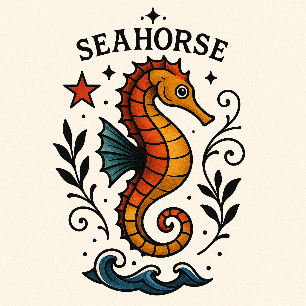Colorful Seahorse Illustration with Marine Elements