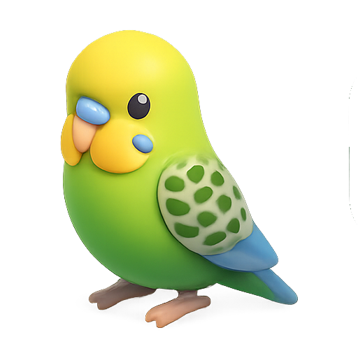 A vibrant 3D rendering of a cartoon parakeet with bright colors and playful design, suitable for animation, games, or children's products.