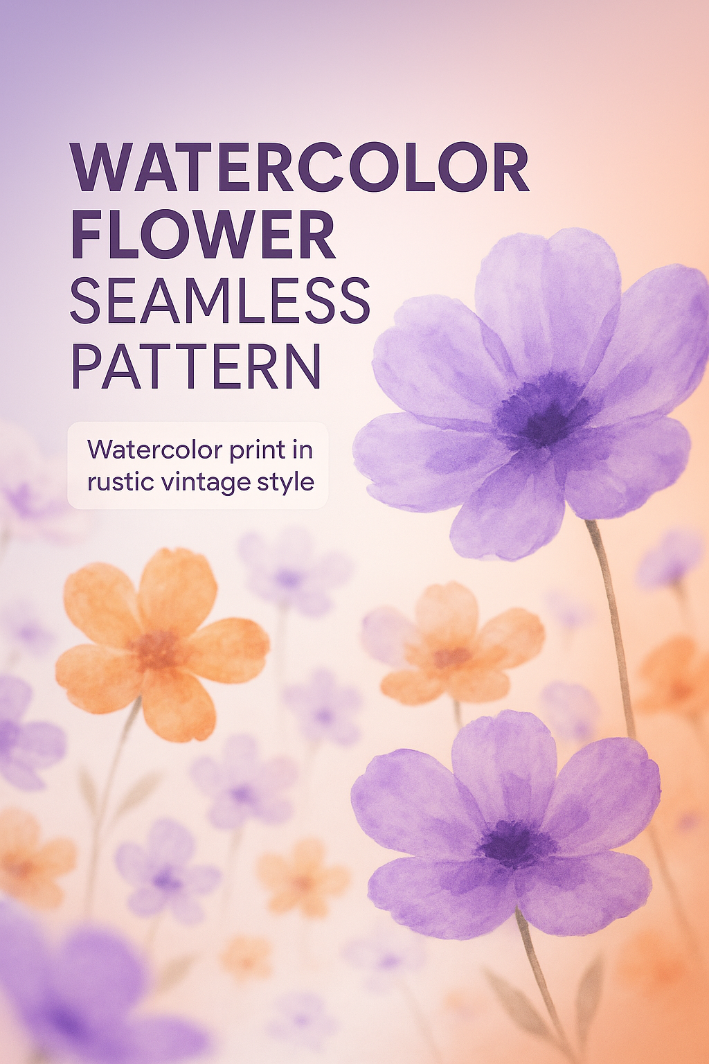 This image showcases a seamless floral pattern with watercolor-style flowers in soft hues. Ideal for textile designs and stationery. It features a rustic vintage aesthetic.