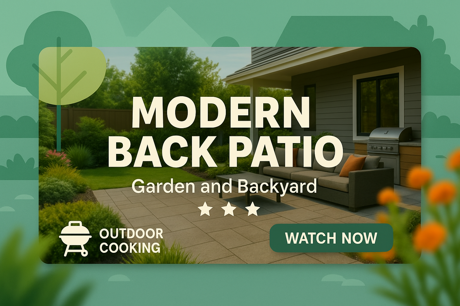 Engaging promotional graphic showcasing a modern patio design, ideal for outdoor cooking and backyard inspiration. Perfect for home improvement marketing.