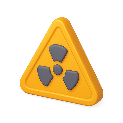 A three-dimensional graphic representation of a radiation warning sign, featuring a bright yellow triangular shape with a gray symbol. Suitable for educational materials or safety guidelines.