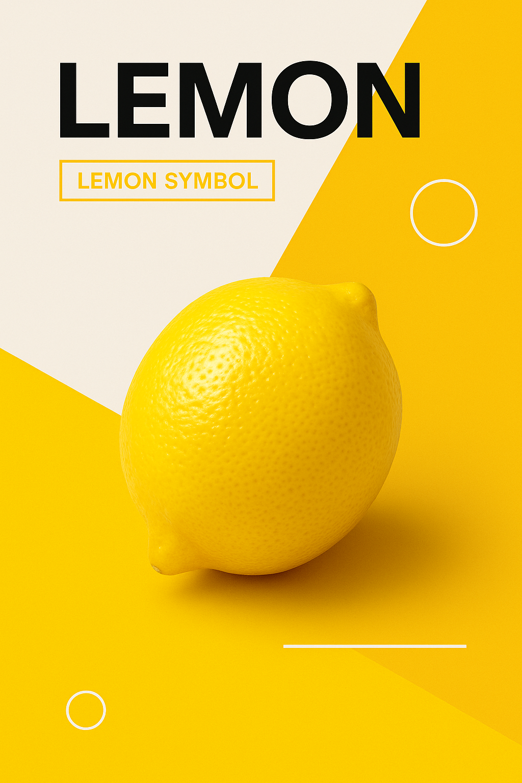 A vibrant minimalist design featuring a lemon as the central object, set against a structured background of distinct color blocks, emphasizing modern aesthetics.