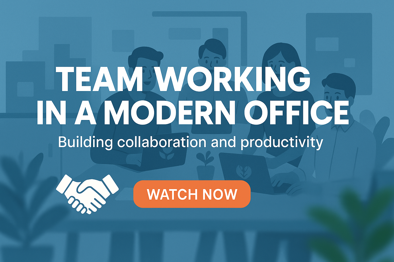 Illustration of a diverse team collaborating in a contemporary office environment, emphasizing productivity and teamwork. Suitable for corporate presentations and marketing.