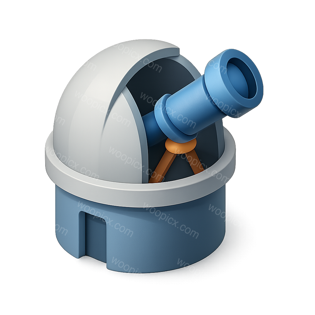 A stylish 3D icon of a telescope housed under a dome, depicted in a three-quarter isometric view. The design features a blue dome with a contrasting orange mount, showcasing a modern aesthetic.