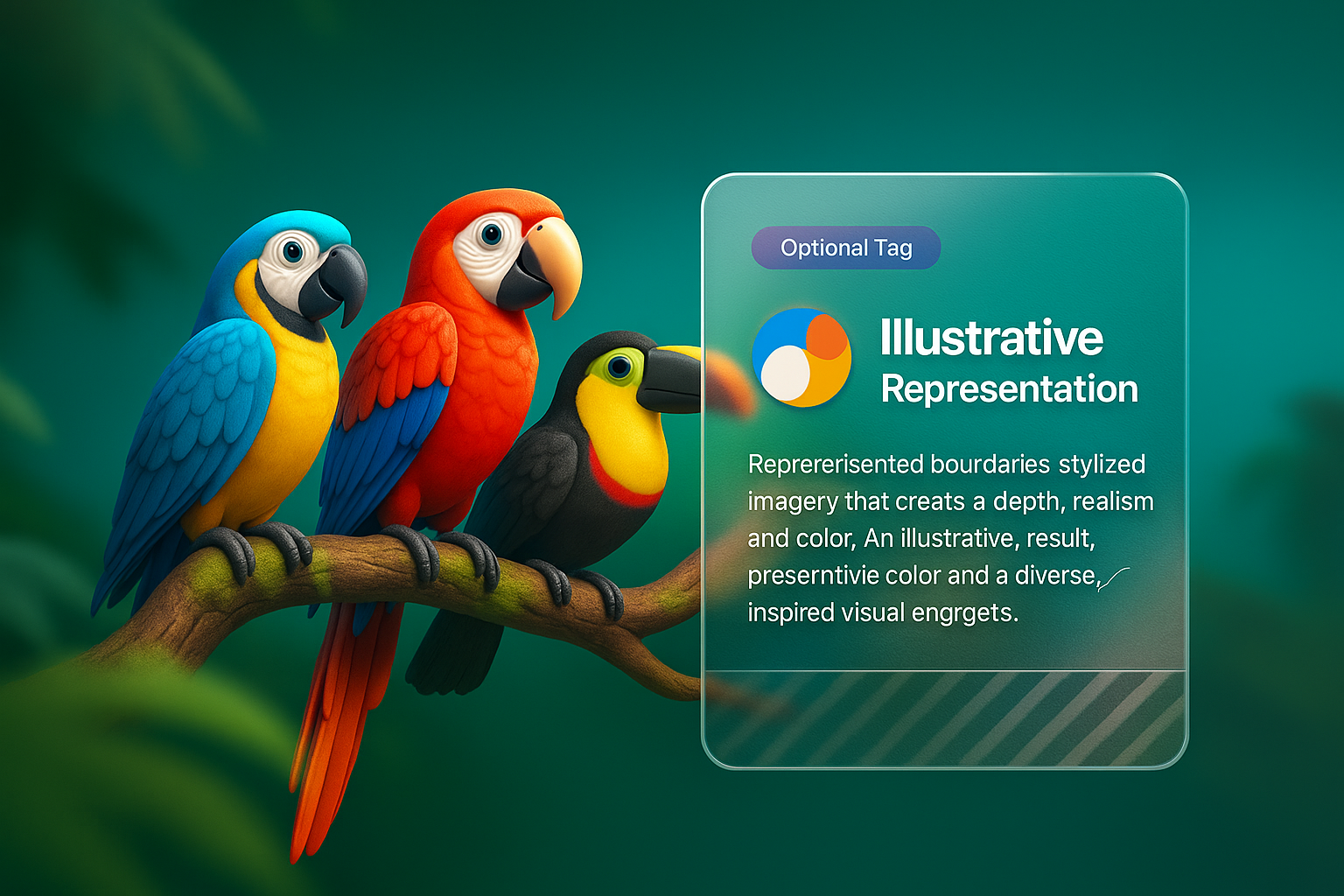 Vibrant 3D Parrot Illustration with Informative Overlay