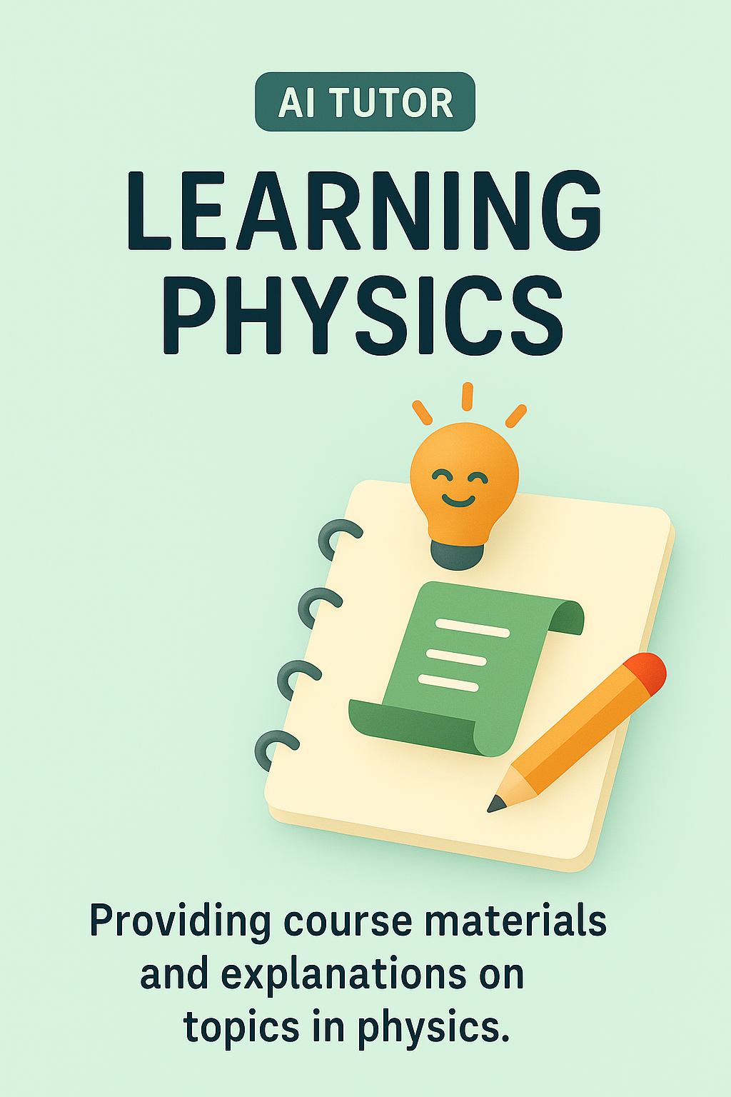 Illustrative graphic designed for educational purposes, showcasing a notebook with a lightbulb icon, emphasizing physics learning materials. Ideal for online course promotion.