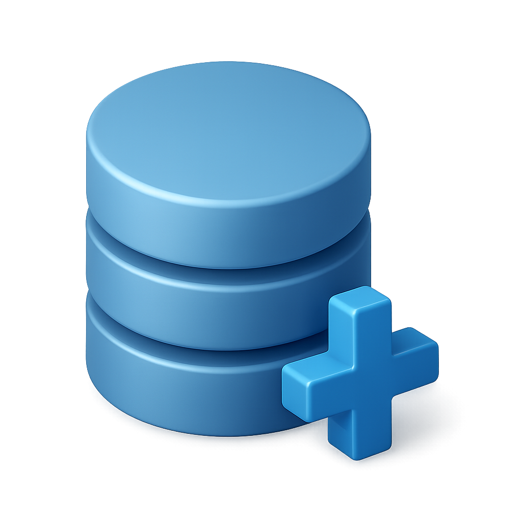 Stylized 3D Database Icon with Plus Sign