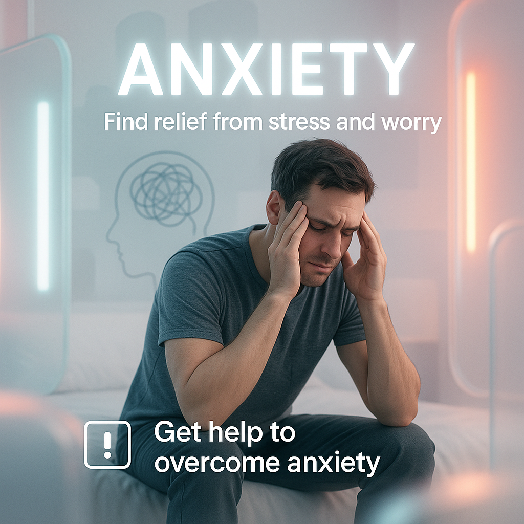 Emotional health awareness image featuring a man expressing stress and anxiety. Designed for mental health promotion, encouraging viewers to seek help.