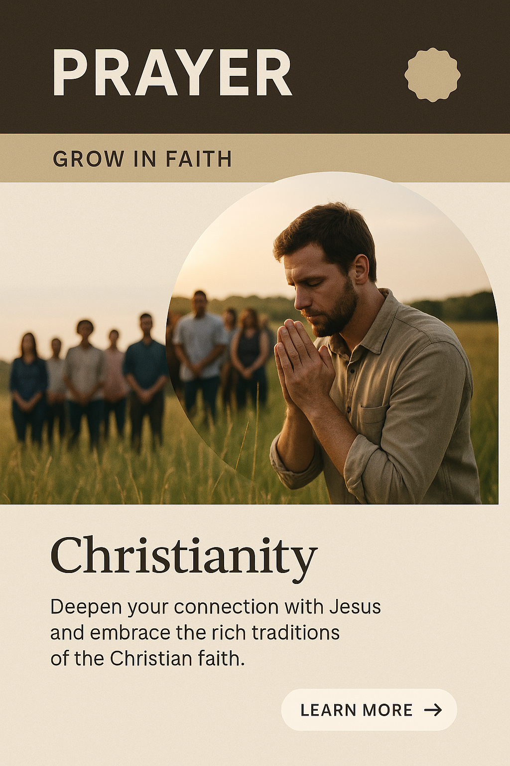 /Collection: /by davooda/Type: PNG/A serene scene depicting a man in prayer amidst a grassy field, surrounded by a supportive community. This image captures the essence of spirituality and Christian traditions.