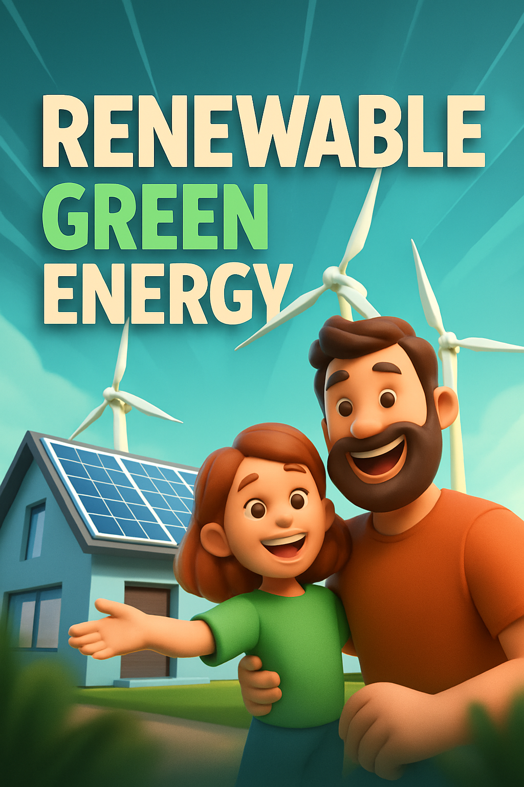Illustrative Graphic on Green Energy with Wind Turbines and Solar Panels
