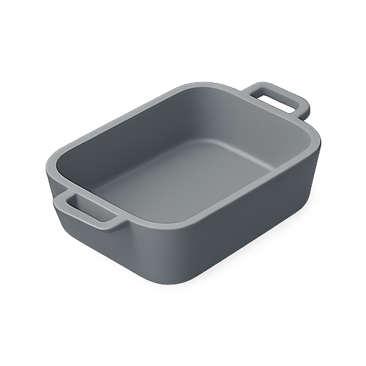 Stylish and minimalistic grey baking dish featuring two handles, perfect for kitchen use and food preparation. Ideal for modern culinary settings.