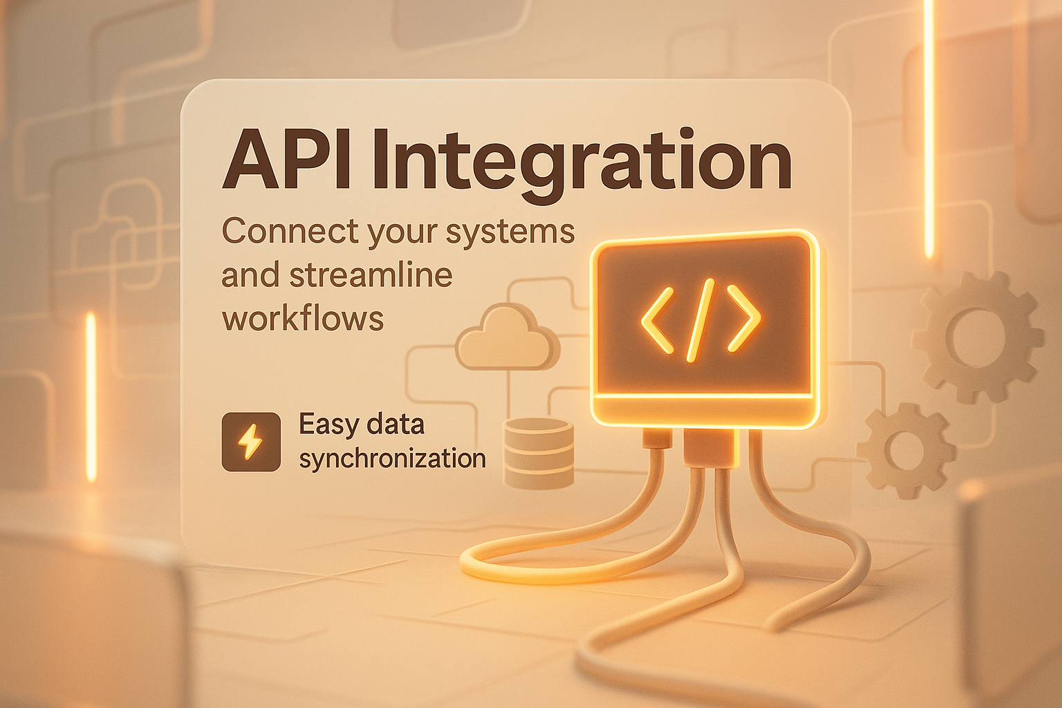 Stylized graphic showcasing API integration, featuring modern design elements and a tech-focused theme suitable for software marketing and presentations.