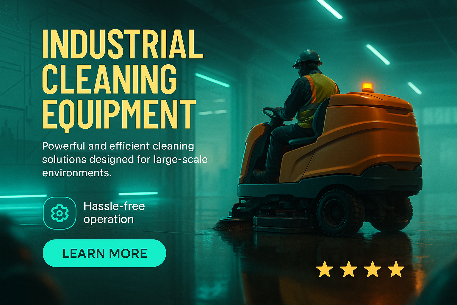 /Collection: /by davooda/Type: PNG/A visually engaging promotional graphic showcasing industrial cleaning equipment. The image highlights the product's efficiency and ease of use, designed for marketing purposes targeting businesses in need of cleaning solutions.