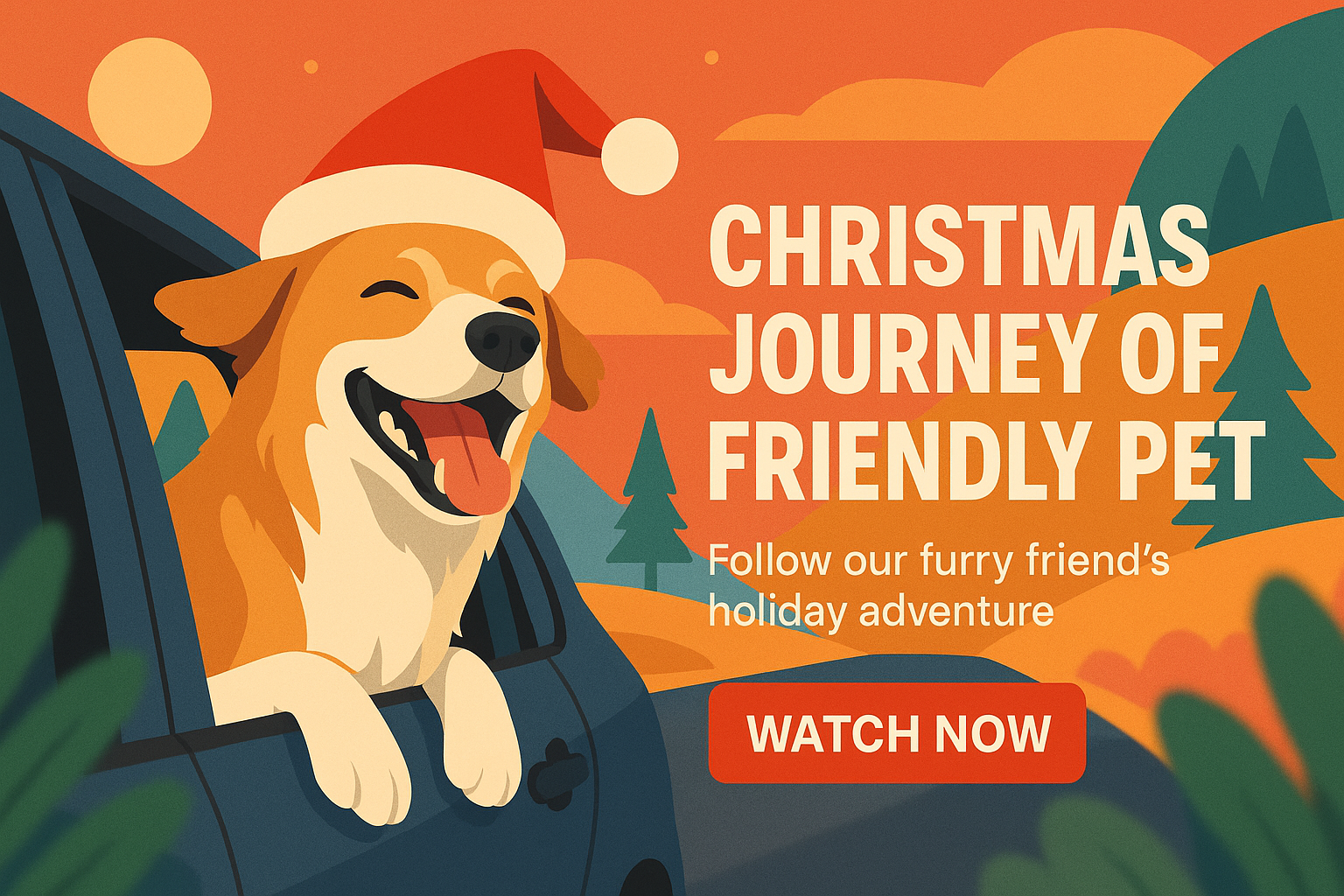 Holiday-Themed Promotional Graphic Featuring a Happy Dog