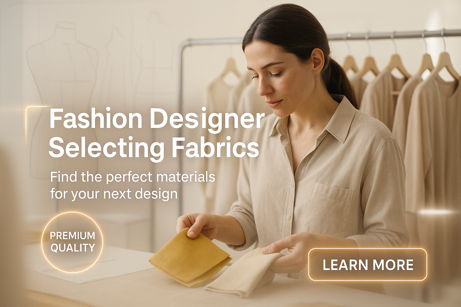 Fashion Designer Reviewing Premium Fabrics in a Studio Setting