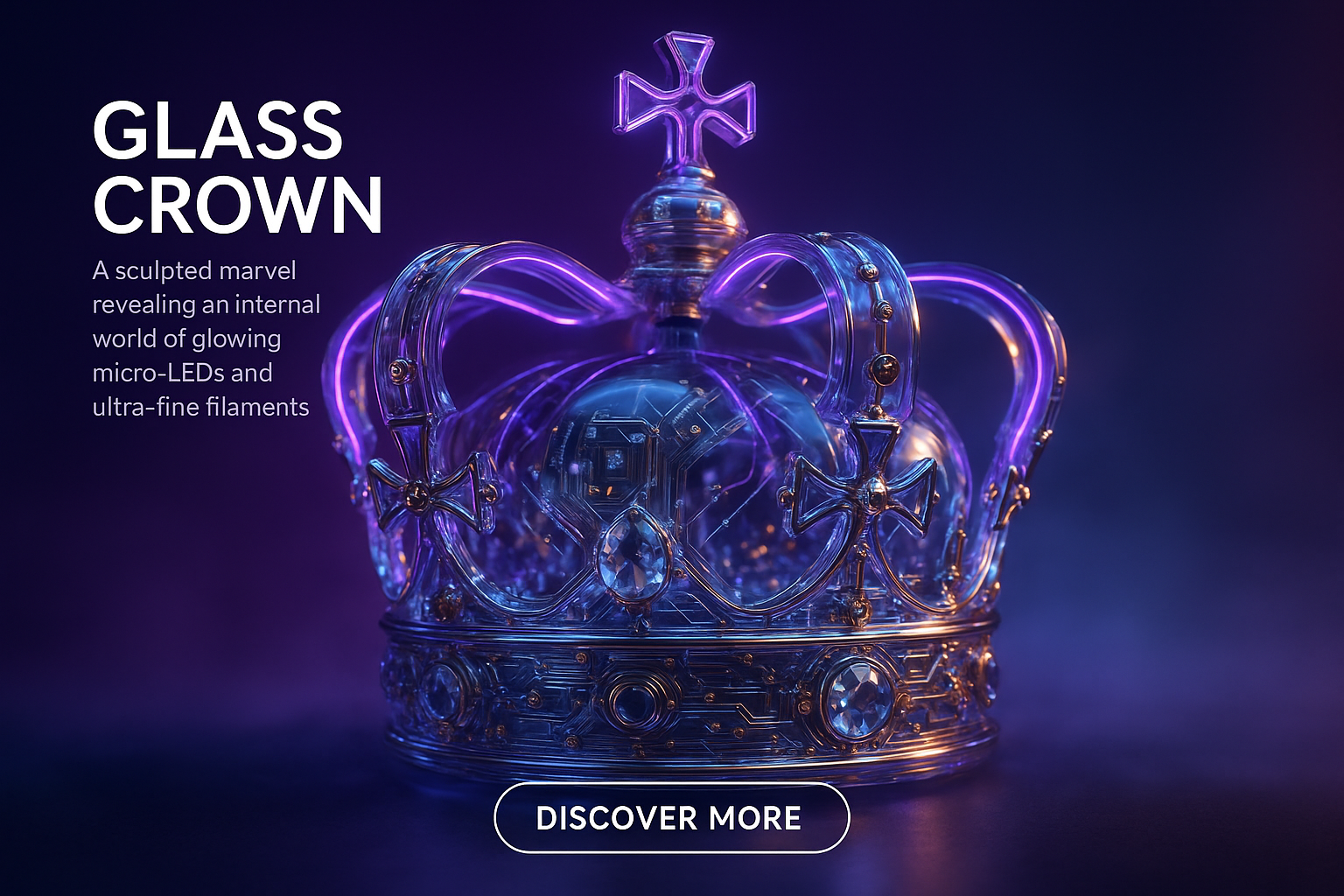 Hyperrealistic 3D Crown Design with LED and Glass Effects