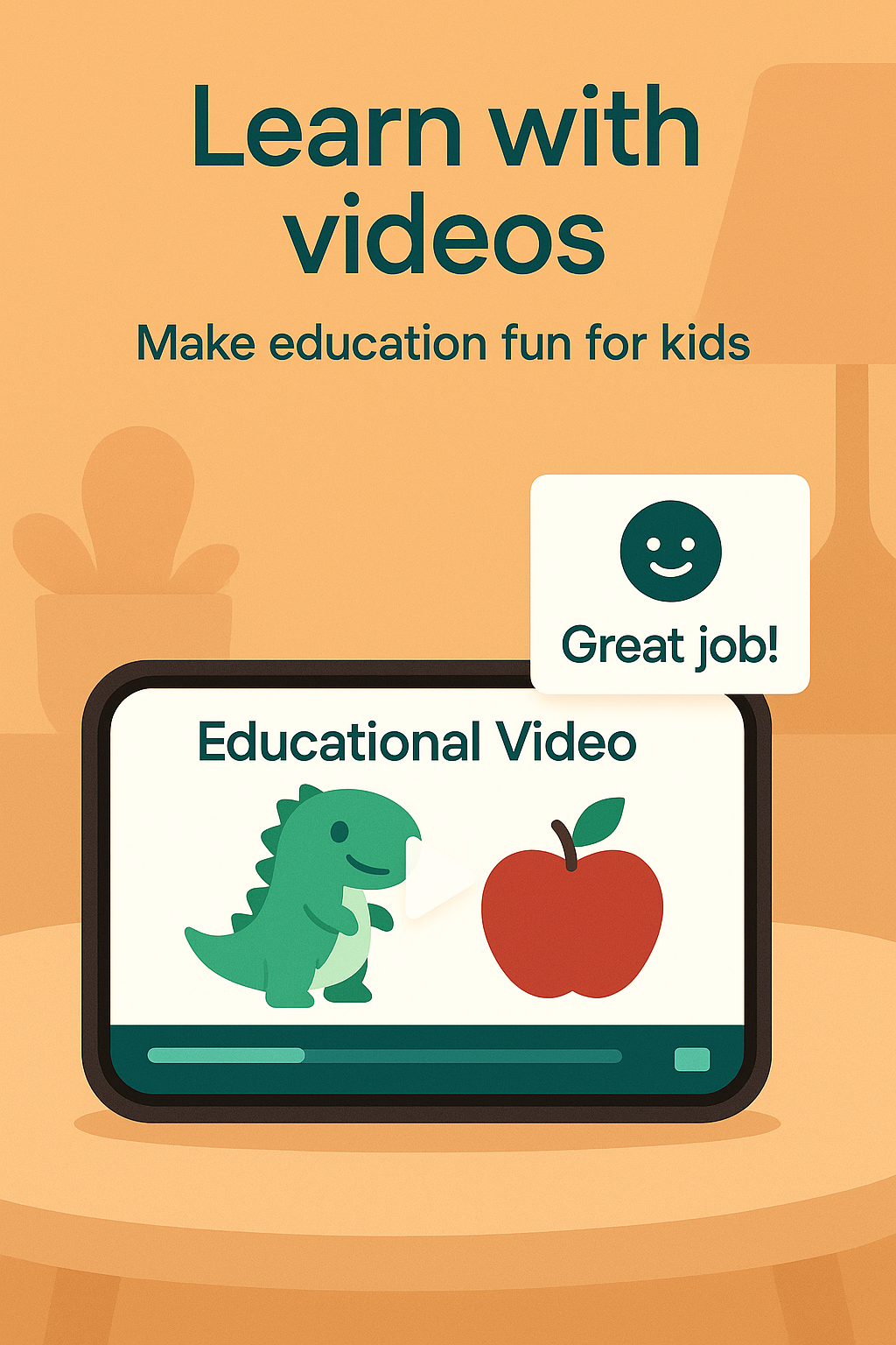 Charming promotional graphic featuring a tablet displaying an educational video, designed to encourage kids' learning in a fun and engaging way.