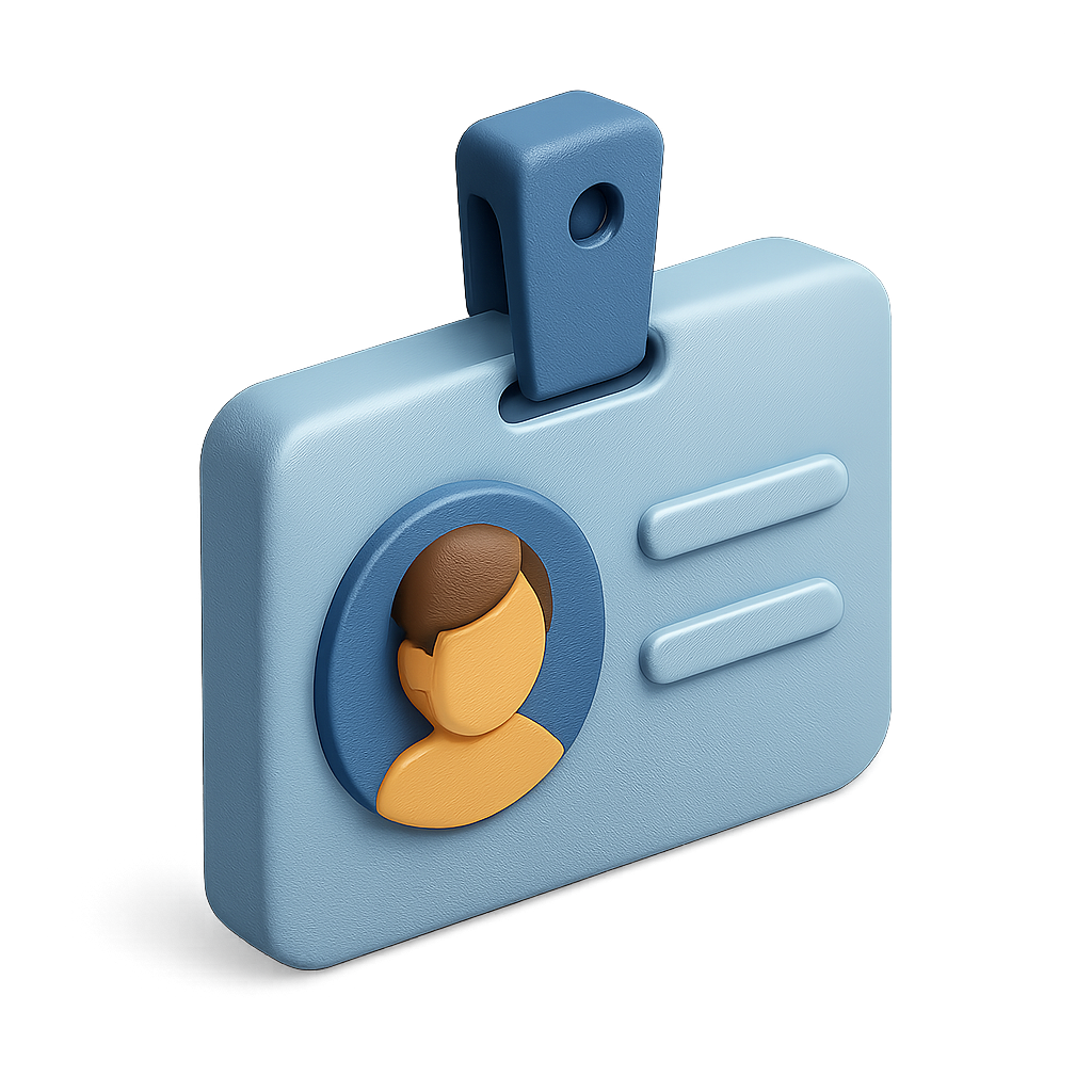 /Collection: /by davooda/Type: PNG/A three-dimensional badge icon featuring a profile silhouette, presented in a three-quarter view with a smooth, volumetric design. The icon has a blue color scheme and a transparent background.