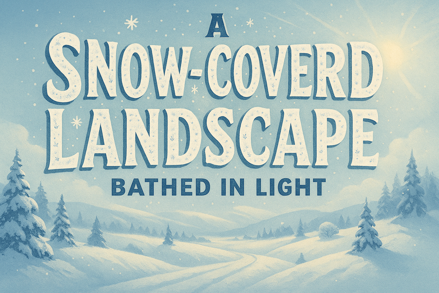 Illustrative winter scene featuring a snow-covered landscape with stylized typography, ideal for seasonal promotions or holiday-themed content.