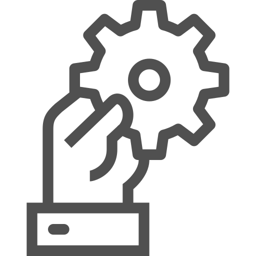 outline simple icon: cogwheel, engineering, hand, innovation, mechanical