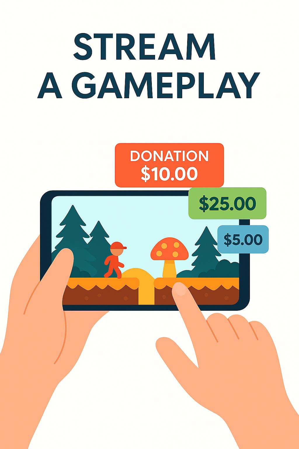 Illustration of Mobile Gameplay Streaming with Donation Options