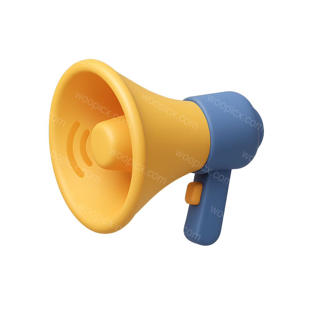 /Premium/Collection: /by davooda/A vibrant 3D icon of an announcement speaker, featuring a yellow megaphone with a blue handle, set against a gradient background. The design showcases a modern, isometric style.