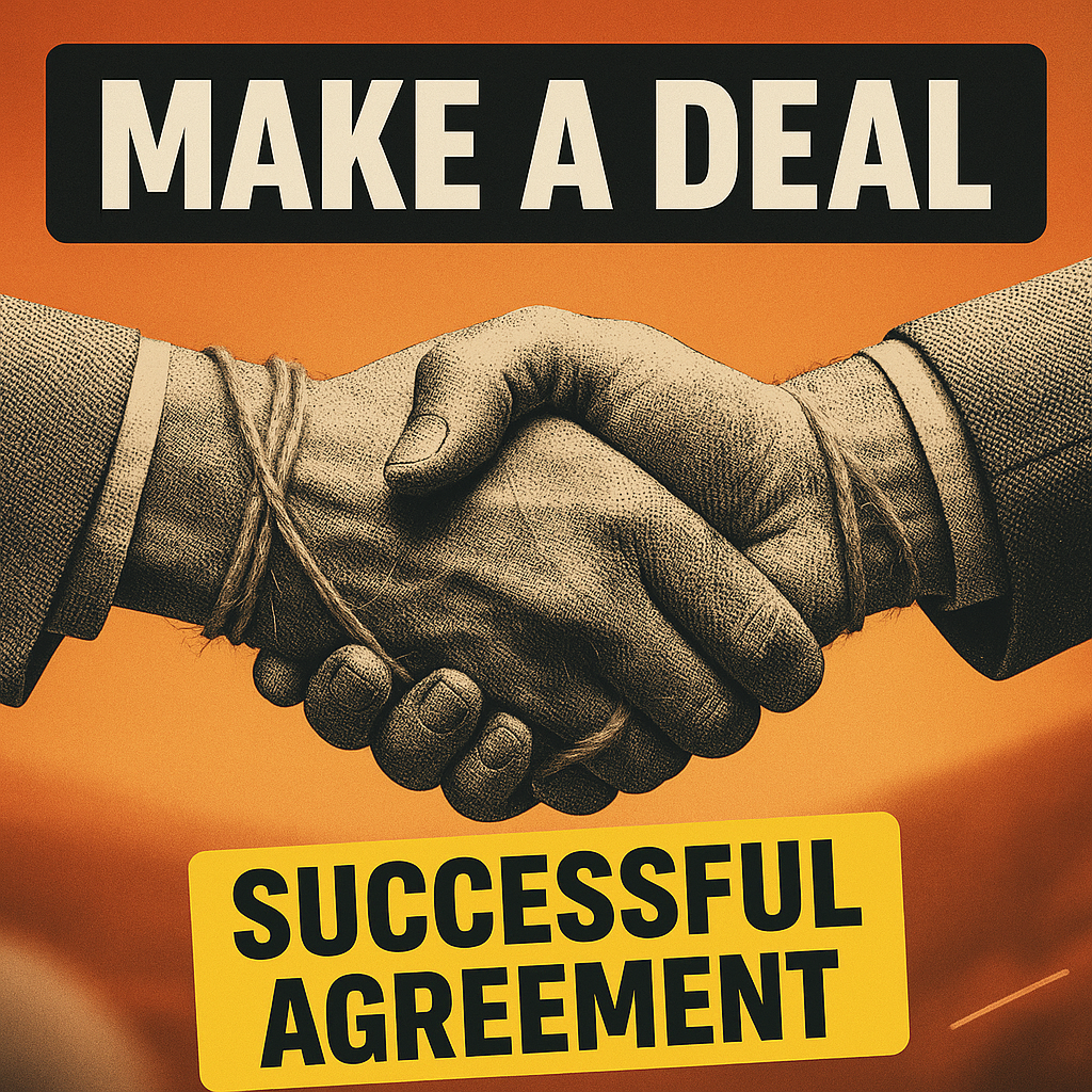 /Collection: /by davooda/Type: PNG/Engaging promotional graphic showcasing a handshake symbolizing successful agreements, designed with bold typography and contrasting colors for business marketing.