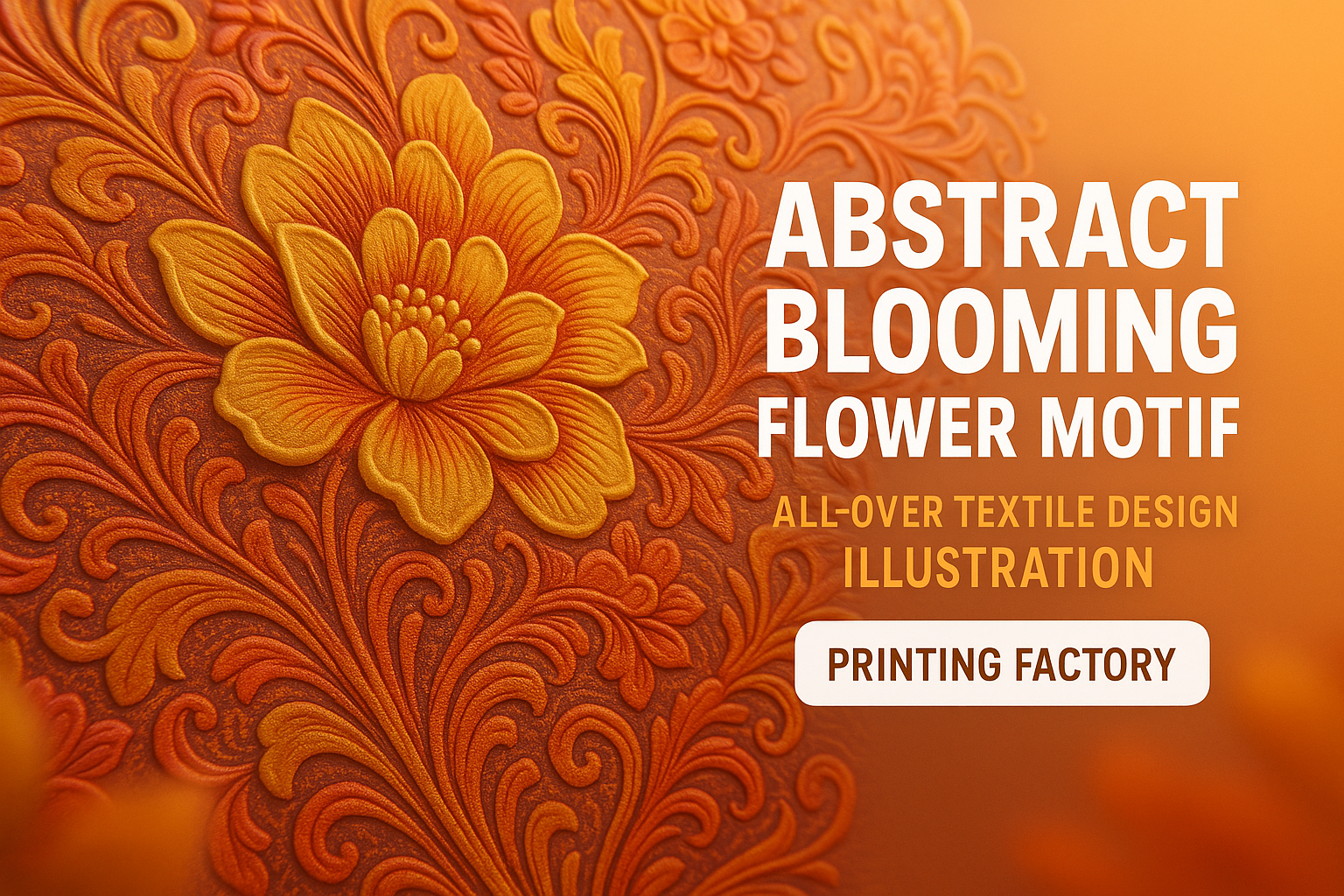 Detailed illustration showcasing an abstract blooming flower motif in vibrant orange hues, ideal for textile design applications and fabric prints.