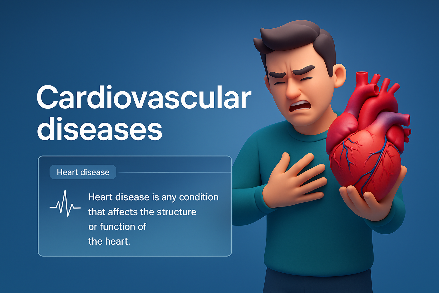 /Collection: /by davooda/Type: PNG/A 3D illustration of a man holding a heart, expressing concern over cardiovascular diseases. The background features a smooth gradient, highlighting the importance of heart health.