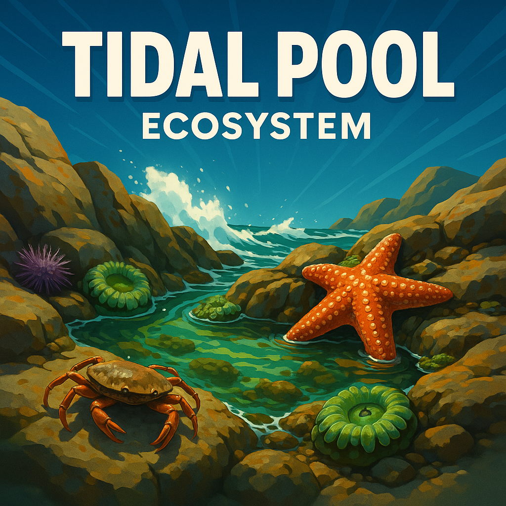 Illustration of a Tidal Pool Ecosystem with Marine Life