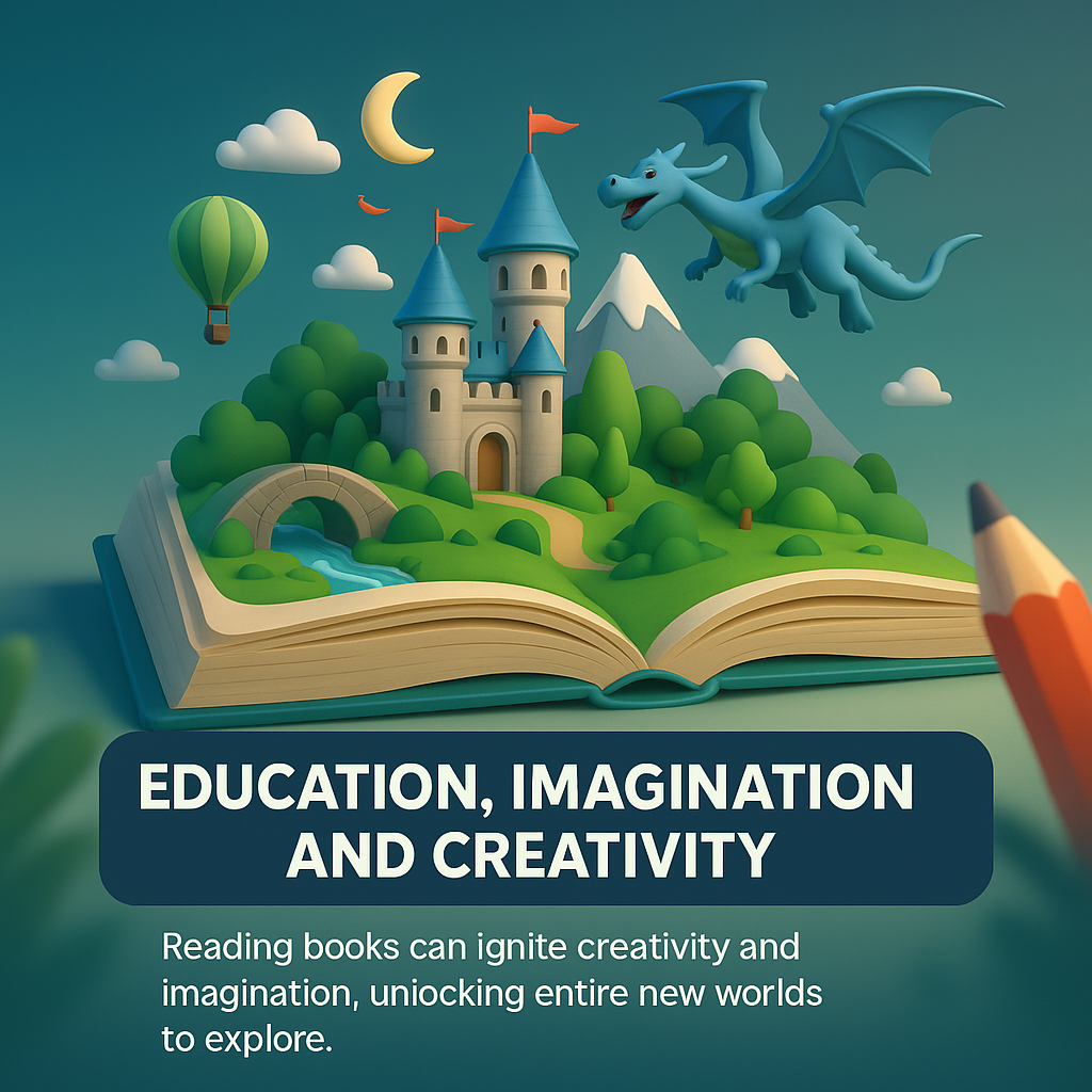 Fantasy Book Illustration Emphasizing Education and Imagination