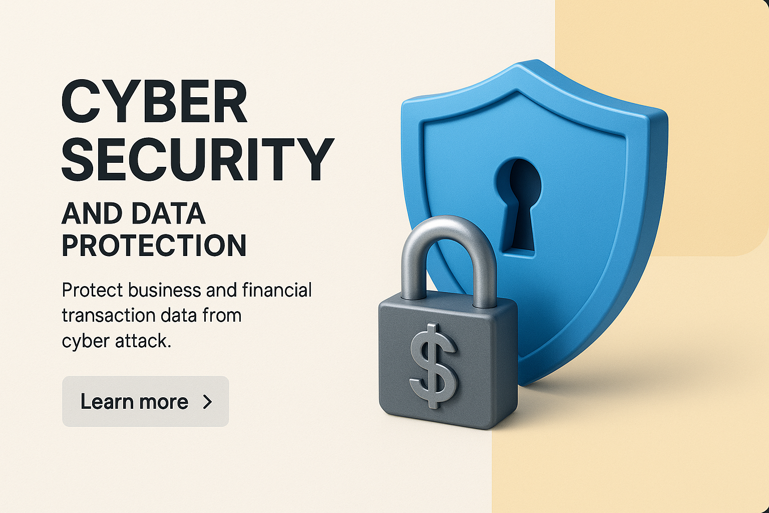 /Collection: /by davooda/Type: PNG/A visually striking representation of cybersecurity and data protection featuring a blue shield and padlock, emphasizing business security. The bold typography enhances clarity and professionalism.