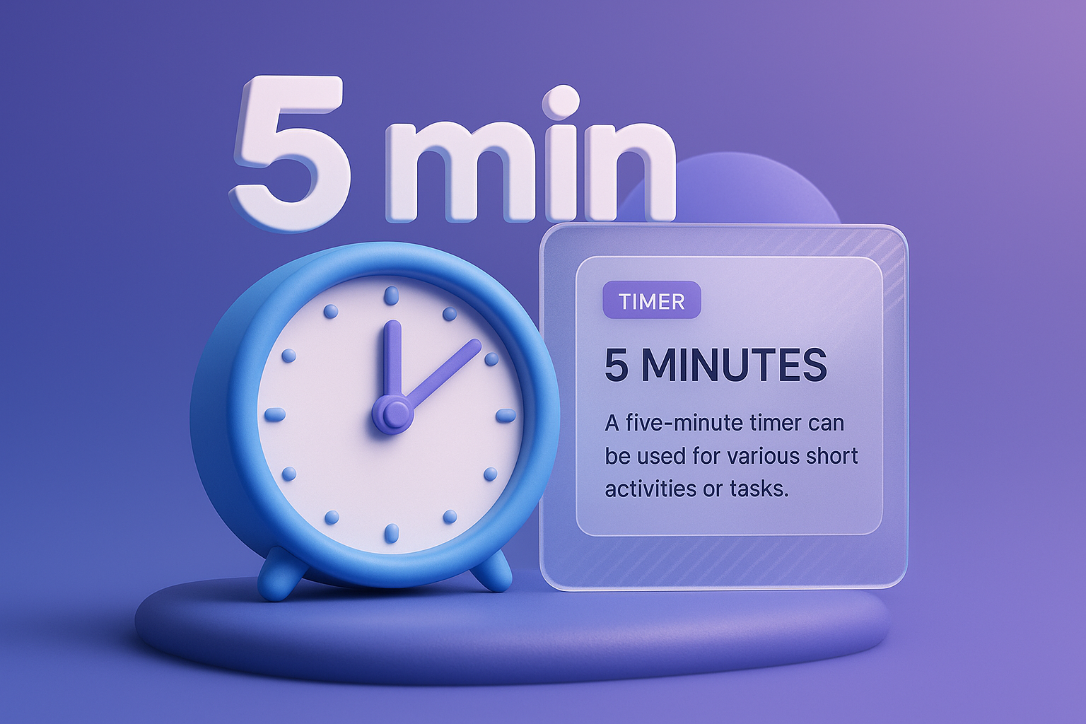 A visually appealing 3D illustration featuring a clock and timer block. The design incorporates a smooth gradient background and emphasizes a modern style suitable for various tasks.