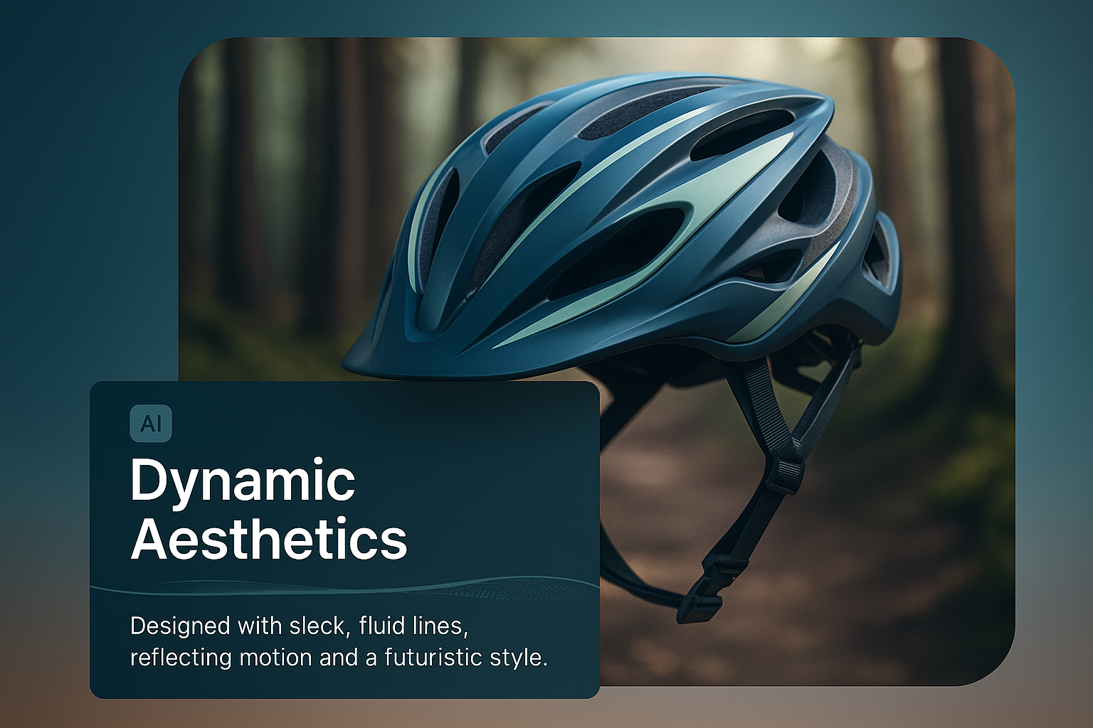 /Collection: /by davooda/Type: PNG/A modern bicycle helmet set against a forest backdrop, showcasing sleek design elements. The image features a gradient background and a text block highlighting dynamic aesthetics.