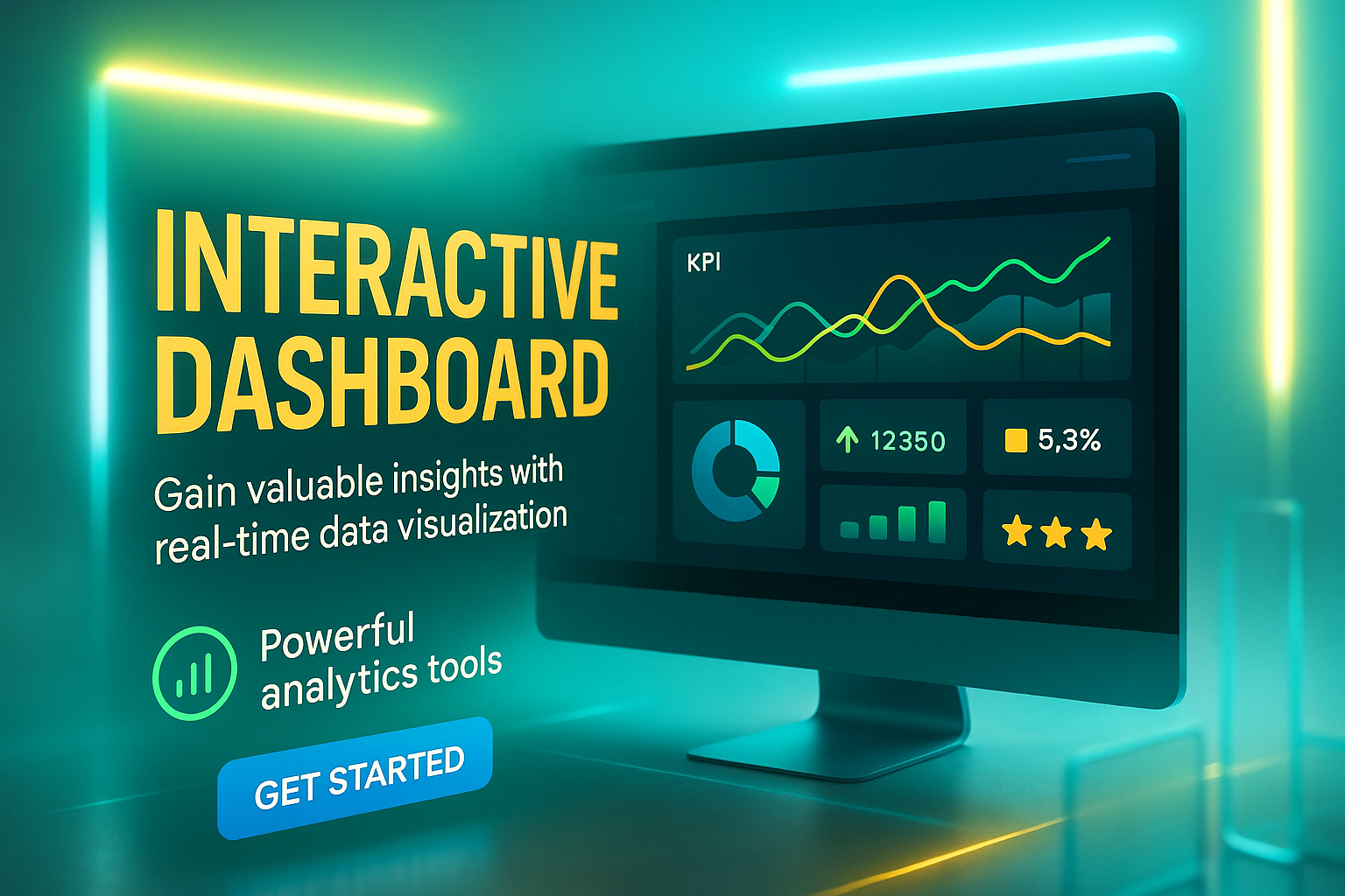 A visually engaging promotional graphic for an interactive data dashboard, featuring vibrant lighting and modern design elements. Ideal for marketing analytics tools.
